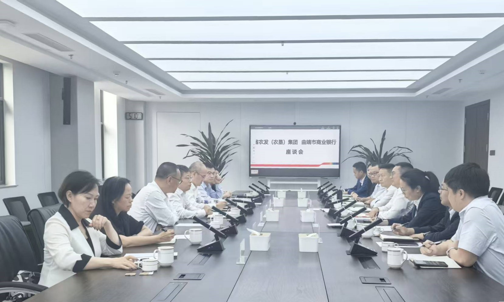 9月19日,集团党委书记、董事长郭曙光,党委副书记、副董事长、总经理胡良波,党委委员、财务总监杨朝晖一行与曲靖市商业银行党委书记、董事长朱嘉喜,党委委员、副行长匡为为,就深化双方合作,共同助力云南高原特色现代农业高质量发展进行座谈交流。